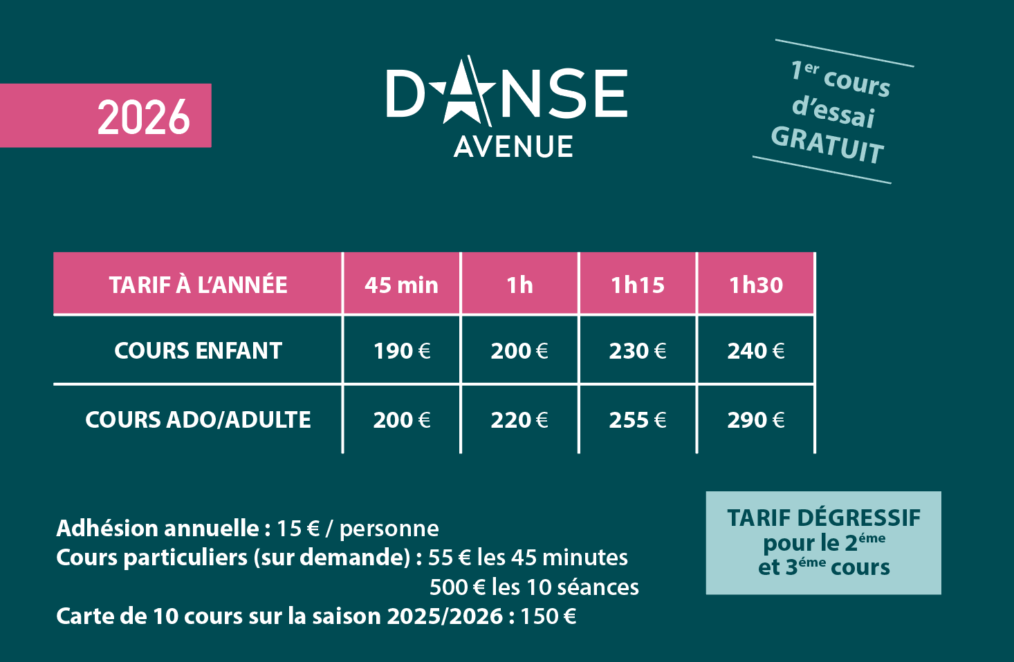 Tarifs 2025/2026