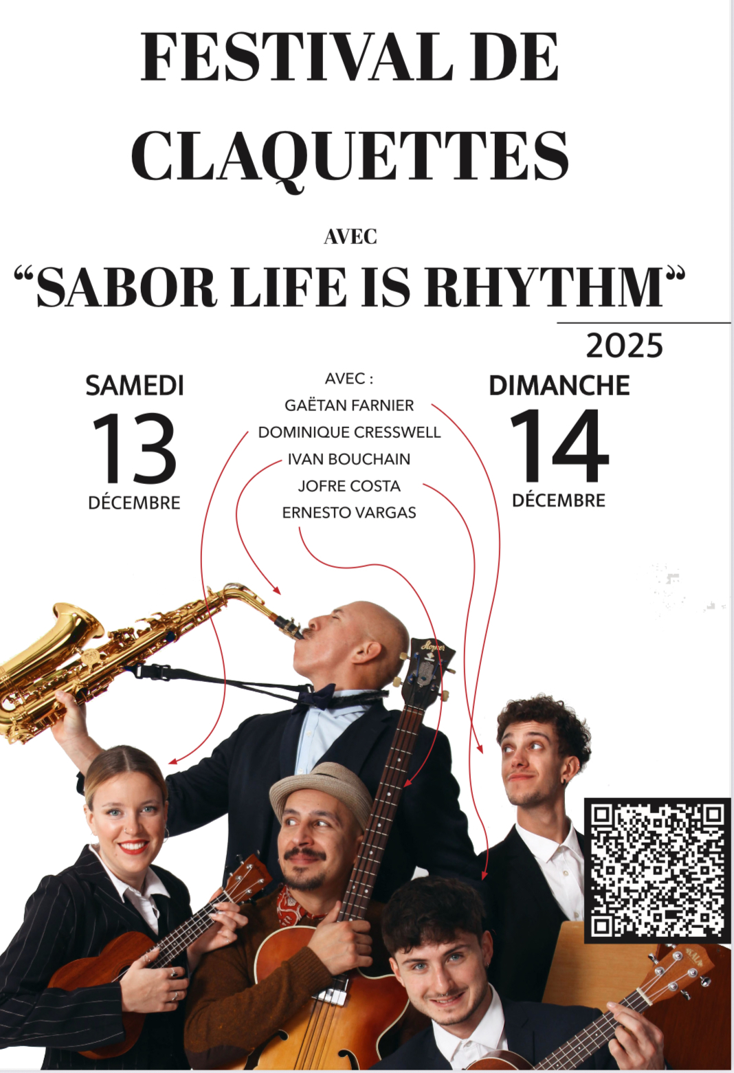 Le samedi 13 et dimanche 14 Décembre, nous vous proposons un festival de claquettes avec des cours et une soirée à partir de 20h30. Toute l’équipe de Sabor Life is Rhythm sera là pour vous faire vibrer et gouter à la saveur de la vie : Le rhythm !